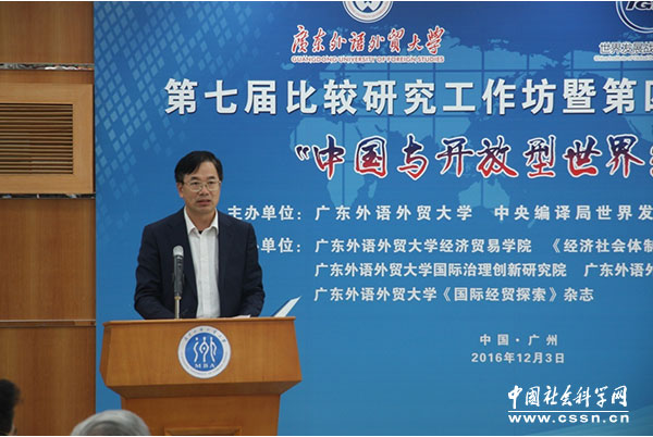 2016年12月2-4日,由中央编译局世界发展战略研究部和广东外语外贸大学主办,广东外语外贸大学经济贸易学院、《社会经济体制比较》杂志、广东外语外贸大学国际治理创新研究院、广东外语外贸大学国际经济贸易研究中心、广东外语外贸大学《国际经贸探索》杂志、国家社科重大公关项目“构建陆海内外联动、东西双向开放的全面开放新格局研究”(15ZDC017)课题组联合承办的第七届比较研究工作坊暨第四届白云论坛“中国与开放型世界经济”学术研讨会于广东外语外贸大学举办。
