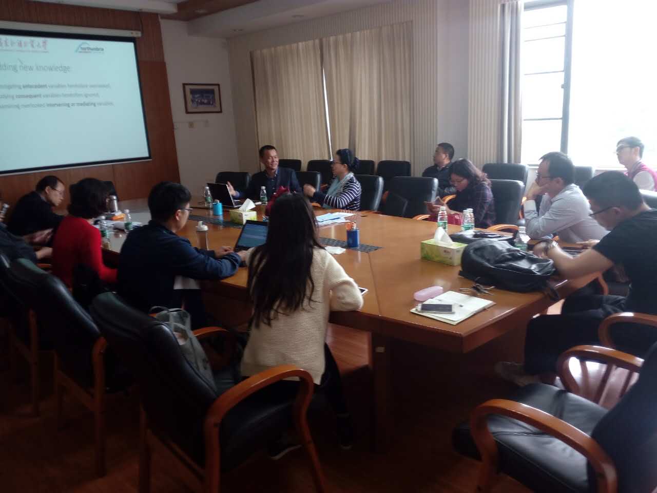 林教授主要针对国际期刊论文的发表,围绕期刊的选择、如何发现前沿研究问题、英文写作技巧、文献阅读等方面进行了经验介绍,并与现场参加讲座的老师交流探讨,大家都觉得受益匪浅。