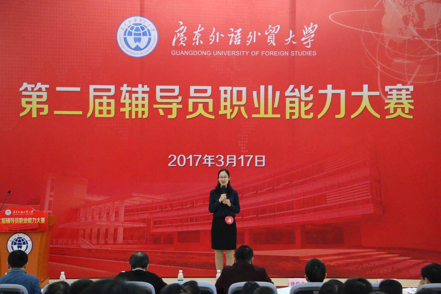 本网讯 3月17日,我校第二届辅导员职业能力大赛于南校区八角楼举行。我校副校长刘海春出席并发表讲话。南北校共15名辅导员参加比赛,商学院辅导员尚丹、信息学院张文萃以及经贸学院曾恒荣获一等奖。比赛由学生工作部主办、学工加油站承办,华南师范大学教授陈岸涛、南方医科大学学生处处长张超、广东药科大学学生处处长徐位良、北京师范大学珠海分校学生处处长张治国、广东农工商职业技术学院学生处处长刘军以及我校学生工作处处长谢应东担任评委。学生工作部、校团委和学生就业指导中心的领导,各学院副书记及辅导员出席比赛。