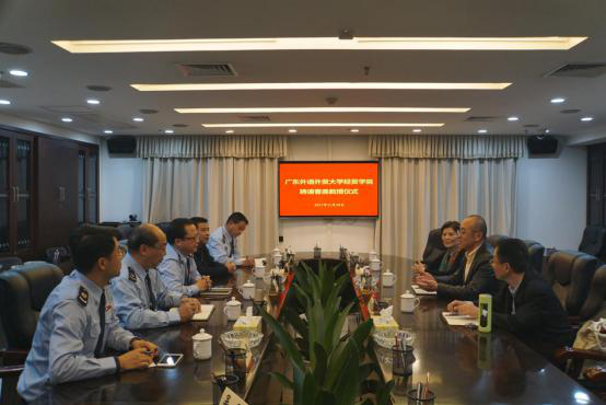 毛祖华对张建武一行表示欢迎,并对受聘为广东外语外贸大学经济贸易学院客座教授表示感谢。他表示,今后将努力配合学院的安排,履行客座教授的职责,同时希望学校和海珠地税局今后继续加强学生实习、税务课程设置、课题研究、人员培训等方面的合作。