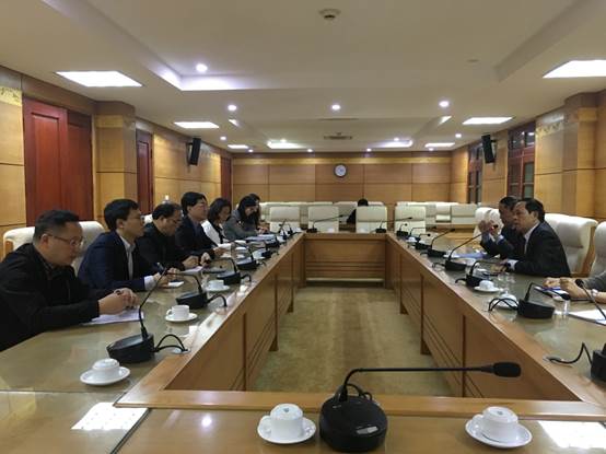 2019年1月10日下午,调研组一行专程赴越中友好协会调研,双方就如何共同推进中越跨境经济合作区的建设进行了广泛讨论。此行原越南外交部副部长、原越南驻华大使、越中友好协会现任常务副主席阮文诗,原越南驻华参赞、越中友好协会常务理事曹玉章接待了调研组。