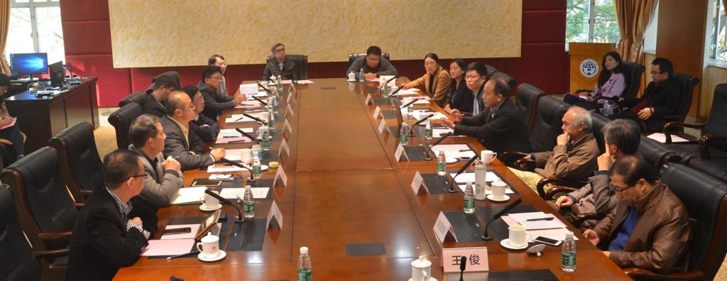 本网讯 1月19日下午,经济学科发展座谈会在北校区第一会议室举行。《经济研究》杂志社社长张永山、编辑部主任刘霞辉、编辑部副主任谢谦,我校副校长何传添,科研处、发展规划处、经贸学院、金融学院、粤商研究中心、经贸中心、商贸中心、服务外包研究院和高教研究中心等相关单位主要负责人参加座谈会。会议由经贸学院院长张建武主持。