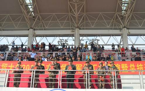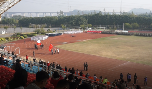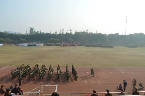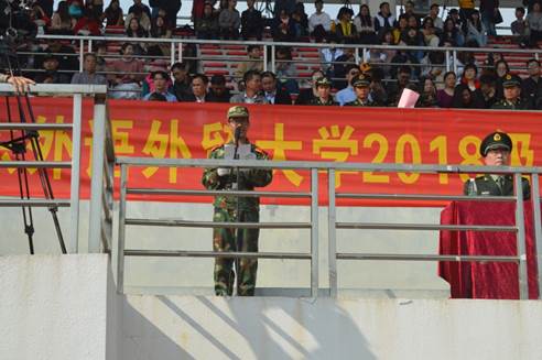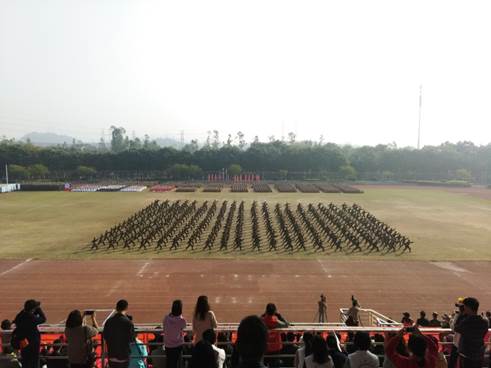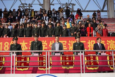 1月25日上午9时,2018级本科生军训汇报表演暨总结表彰大会在南校体育场举行。出席本次大会的领导有:校党委书记隋广军,党委常委、副校长、军训领导小组组长刘海春,副校长陈林汉,广东省国防教育办公室副主任石雄东,广州市番禺区人民武装部军事科科长邓斯奇中校,军训旅政委、武装部部长何越晖。我院党委书记梁洁老师以及军训指导员、学工办辅导员龙世邦老师和张自勉老师也出席了本次大会。