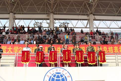 校党委常委、副校长、军训领导小组组长刘海春同志对我校军训工作作了简要总结,他高度评价了我校师生在军训中表现出的优秀品质和良好的精神面貌,同时要求同学们将军训中收获到的宝贵财富运用到日后的学习生活中去,践行广外“明德尚行,学贯中西”的校训。随后,副校长陈林汉同志宣读了军训优秀集体和个人的表彰决定,与会领导为获奖的集体和个人进行颁奖。