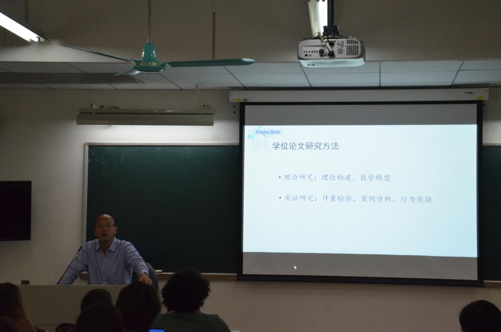 王俊教授为同学们讲述了学位论文的研究方法,案例研究的应用边界、案例研究的逻辑顺序、学生进行案例写作存在的主要问题及相应解决方法,并与大家举例分析了一篇较为成熟得写案例分析的文献。