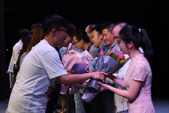 随后全体老师上台为同学们撒糖祝福,齐祝同学们毕业快乐。师恩难忘,在老师们送上祝福的同时,各班毕业生也为老师们准备了鲜花,表达了对老师们这些年来淳淳教导的感谢。