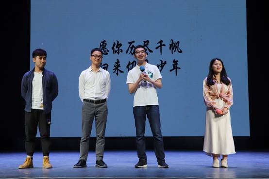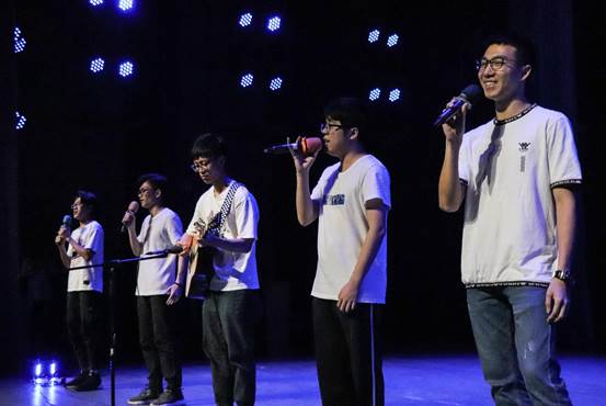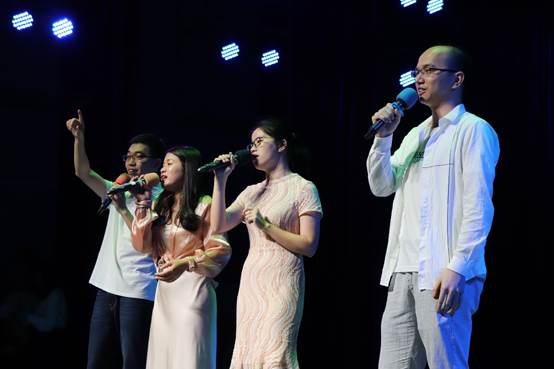 小朋友们走秀结束后,辅导员老师刘晓琪上台为同学们献唱《你曾是少年》,歌声悠扬动听,同学们纷纷随之合唱。紧接着,柯树煜、夏立红、张自勉、刘晓琪四位辅导员老师一同为同学们献唱歌曲《大梦想家》,祝愿同学们毕业后继续勇敢追梦。