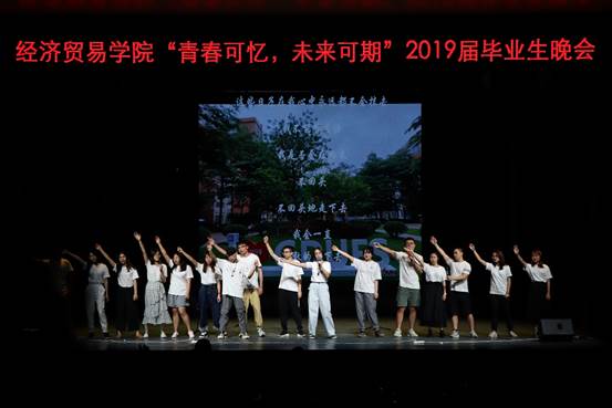 经贸学院2019届毕业生晚会于2019年5月10日19:00在南校区b8学术报告厅隆重举行。出席本场晚会的嘉宾有:经济贸易学院院长张建武,副院长唐静,党委副书记陈静,国贸系陈琳老师、经济系陈川老师、税务系主任刘明勋副教授、纪委吴廷广老师、辅导员杨广超老师、办公室主任陈哲老师、曾恒老师、研究生辅导员夏立红老师、柯树煜老师、学工办辅导员周金华老师、谢铭威老师、龙世邦老师、张自勉老师、刘晓琪老师。