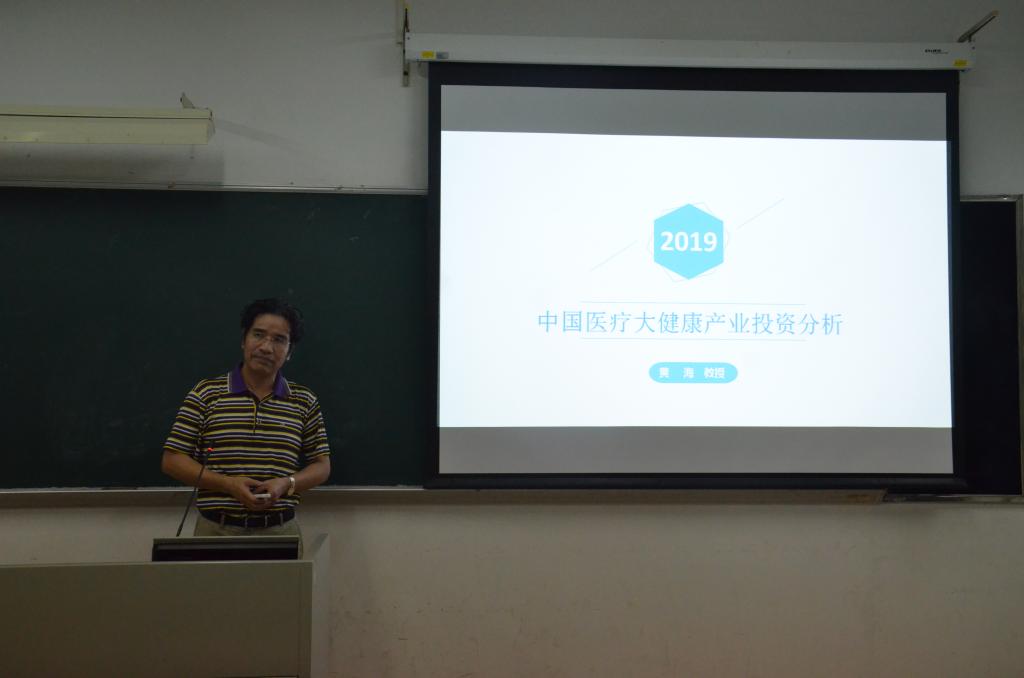 6月10日晚7点,黄海教授在南校区教学楼F211作了题为“中国医疗大健康产业投资分析”的专题讲座。本次讲座由MIB教育中心主任王政教授主持,经济贸易学院院长张建武教授、辅导员柯树煜老师和18级MIB全体学生参加本次讲座。