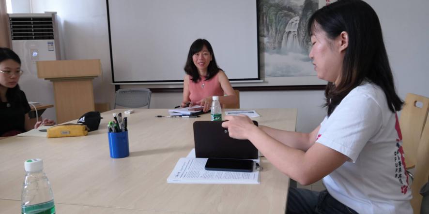 会议中,唐老师向学生代表提问了他们对任课老师的印象和评价。学生代表都认为学院的任课老师专业水平高,教学方式具有多样性和启发性,但也希望在课堂上教师与学生之间有更多的互动。