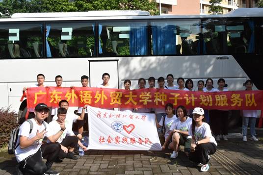 本网讯2019年7月6日早晨八点半,“种子计划服务队“的所有队员们在广东外语外贸大学校园外集合完毕,准备上车奔赴河源市龙川县田心镇东坑村进行为期12天的三下乡活动。
