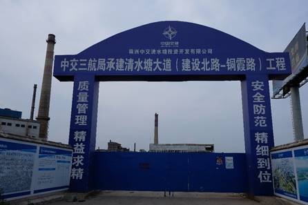 合影后,队员们在公司旁发现了中交三航局承建清水塘大道工程的现场。