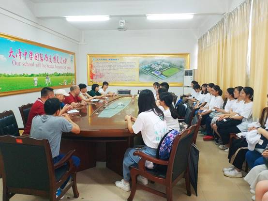 2019年7月8日上午7点25分,全员与校方领导开展见面会。队员先对校方的热情欢迎表示感谢,而后双方协商了社会实践期间双方的工作安排,校方向义教组成员强调了教学内容上的注意事项,并对“情之程”全体成员的工作进行了鼓励。