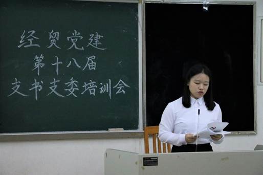 随后,经贸党建组织部部长黄嫚虹对各支书支委进行党务知识培训,培训内容包括本学期的党务工作安排和发展党员的工作流程。培训过程中,她介绍了预备党员的发展工作,并指出了发展对象申请材料填写过程中需要注意的问题。