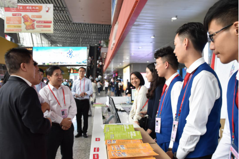 随后,焦方太一行在广交会国际联络部总经理刘铨东的陪同下先后到达境外贵宾VIP 接待室、Info 咨询台与咨询导向组等工作岗位亲切慰问我校实习生,勉励广外学子认真对待并珍惜此次实习机会,展现广外良好风采。广交会各岗位主管介绍了实习生工作情况,对广外学生的良好精神风貌、优秀的外语沟通能力、积极的工作态度表示肯定和赞赏。