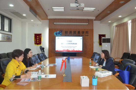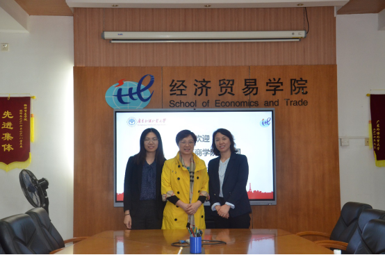 本网讯10月30日下午,法国南特高等商学院项目经理杨红霞来访经济贸易学院。我院国际合作项目主任陈琳,国际合作项目办公室秘书卢姗姗在学院301会议室会见了来宾。双方就促进两校合作等方面进行了探讨。