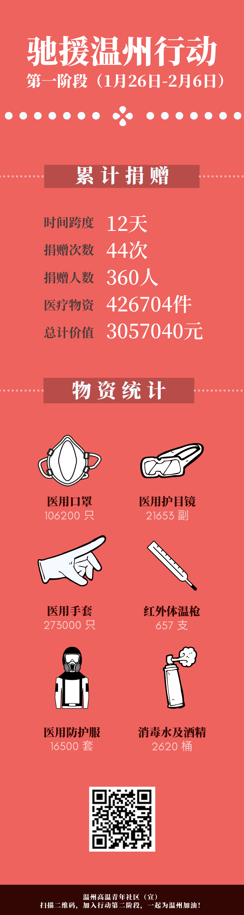 “不是有希望才开始行动,是行动了才有希望”,作为学生,我们虽未能披上战衣,踏上战场,却也能为战场后方防御贡献一份力量。自疫情发生以来,温州市作为湖北省外疫情最严重的城市,靠着温州人民、政府以及散落世界各地的华侨温商积极开展自救行为。作为温州人的我,也以一己之力参与疫情防控,通过《驰援温州》捐赠物资。实际上,《驰援温州》志愿者活动主要面向青年人,最初只是希望利用熟人之间的朋友圈实现物资信息的互通互换,范围并不大。但随着活动一次次的转发,志愿者每日每夜地在世界各个角落搜寻物资,认购者积极认捐各类紧缺物资,援助的物资总数越来越大,《驰援温州》的名声也越来越响。小小的吸铁石逐渐汇聚了世界各地有着同样行动力的青年,凝聚成一股“持续高温”的青年力量,活动也从个人行为演变成志愿者联盟,《驰援温州》由此成为了温州抗击疫情的最重要力量之一,为温州人抗击疫情带来希望。
