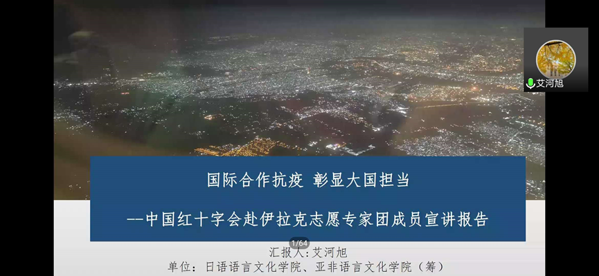 本网讯6月18日,经贸学院线上思政宣讲会在腾讯会议顺利举行,学院全体教职工,党委宣传部、教务处、马克思主义学院负责人以及学生代表参加会议。会议由经贸学院党委书记梁洁主持,主讲人是阿拉伯语系讲师、中国红十字会援助伊拉克防控疫情志愿专家组成员艾河旭。