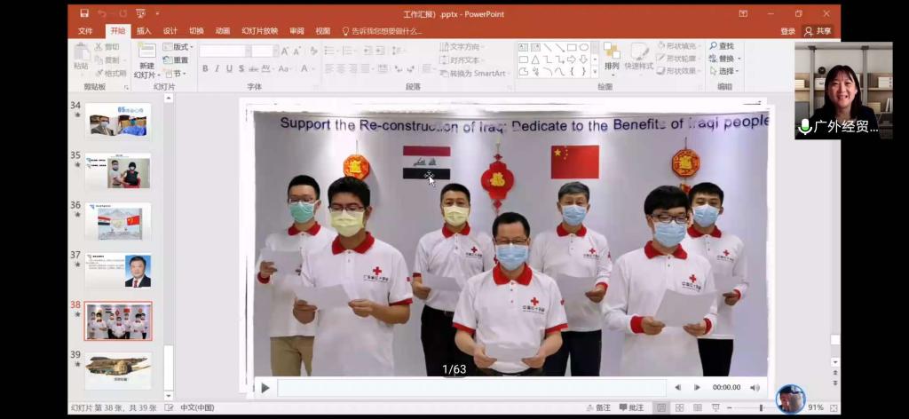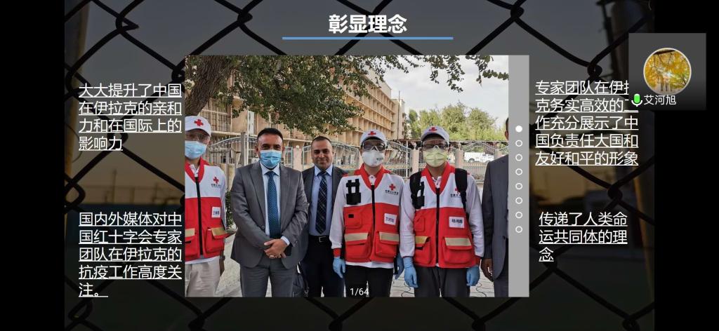 宣讲会的最后,艾河旭表示“疫情无国界,患难见真情”,中国专家团队在疫情与战事双重危险之下毅然奔赴火线、驰援伊拉克并提供全方位、全过程援助的举动得到国际社会广泛的认可与肯定,同时也使中伊友谊更加深厚。