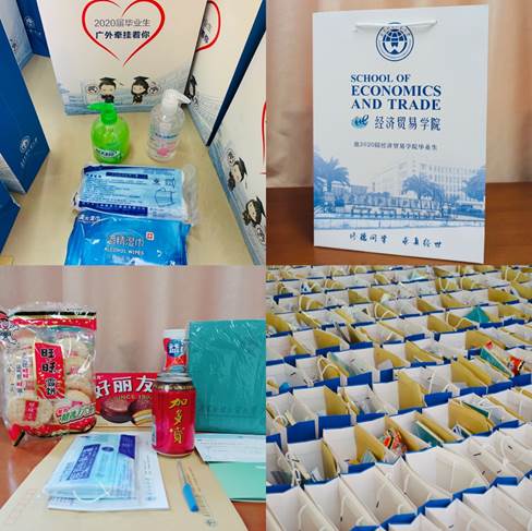 为营造和谐欢乐的返校氛围,给毕业学子送上暖暖的祝福,我院特别定制了毕业生返校大礼包(内含广外笔记本、祝福卡片、旺旺雪饼等精美礼物),邀请学院师生代表拍摄制作毕业生祝福视频,专门定制具有学院特色的背景展板供毕业生合影留念、制作毕业生返校宣传横幅等,让毕业生有个难忘的回忆。