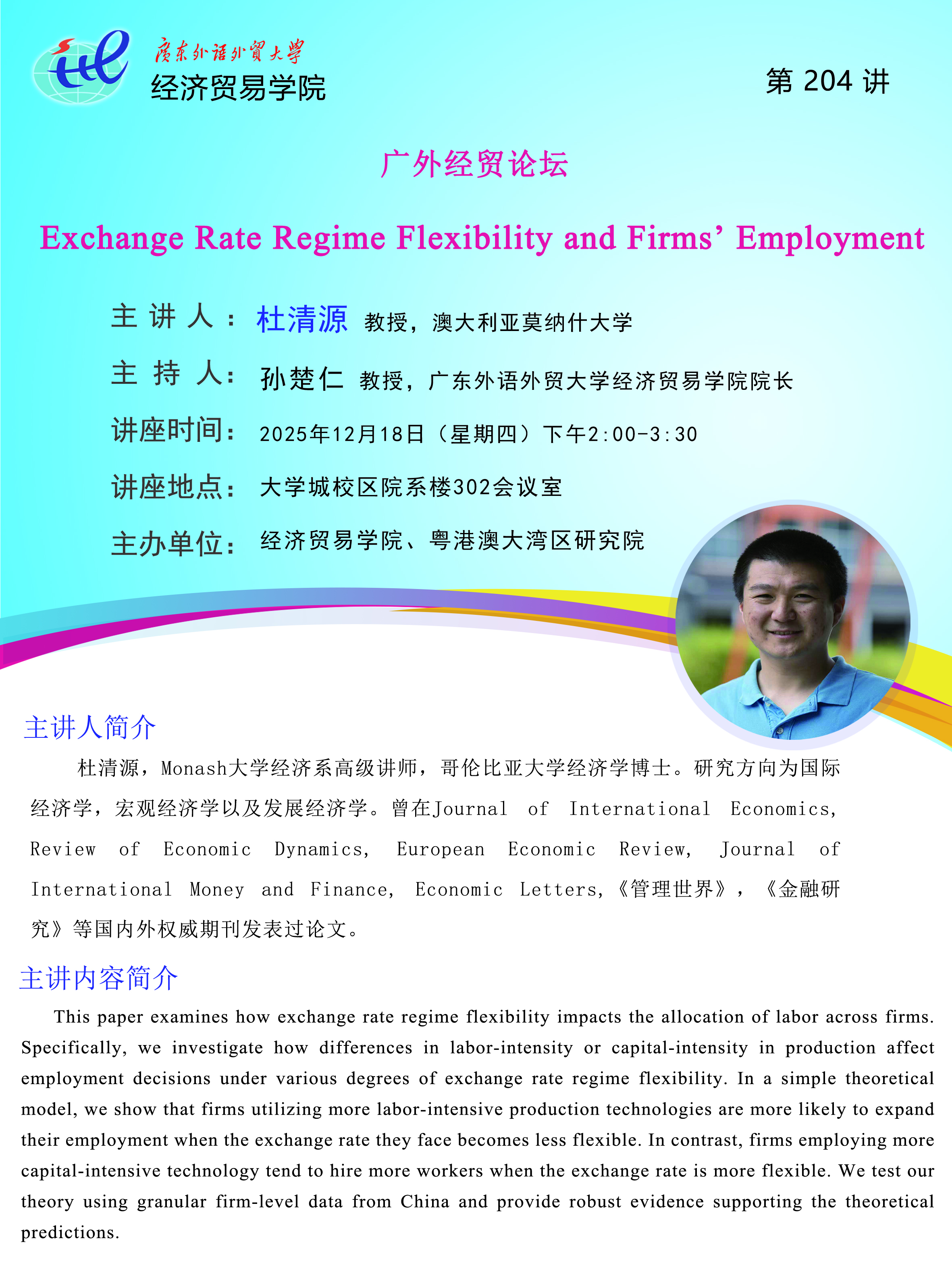 广外经贸论坛(第204讲):Exchange Rate Regime Flexibility and Firms’ Employment