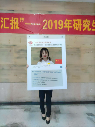 研究生的选择极大地改变了她的人生方向。有人说机遇很重要,但是她觉得选择和努力更为重要。她本科也就读于广外,但感觉仍需进一步提高,于是选择了读研,想充实自己,提高自己的竞争力。最开始,她把大部分时间分配在课程学习上,认真地上每一节课,用心地对待每一个课程的TASK和PRESENTATION,而且每次都争当LEADER,并力求做到完美,试图抓住每一次机会来提高自己的领导力、案例分析能力、PPT制作能力、演讲能力以及团队协作能力,同时也会积极组织并参与各种集体活动,以期成为一个全方位发展的人,她很享受与班级同学们一起学习和成长的过程。