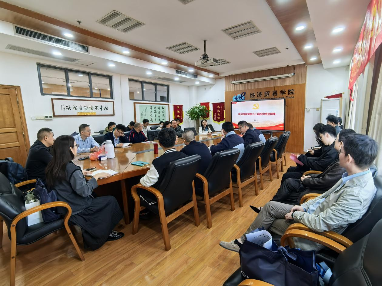 又讯 12月8日,经济贸易学院党委召开理论学习中心组扩大学习会,专题学习党的二十届四中全会精神。学院党政班子成员、党委委员、系办中心主任、党支部书记等25人参加学习。会议由学院党委副书记、院长孙楚仁教授主持。