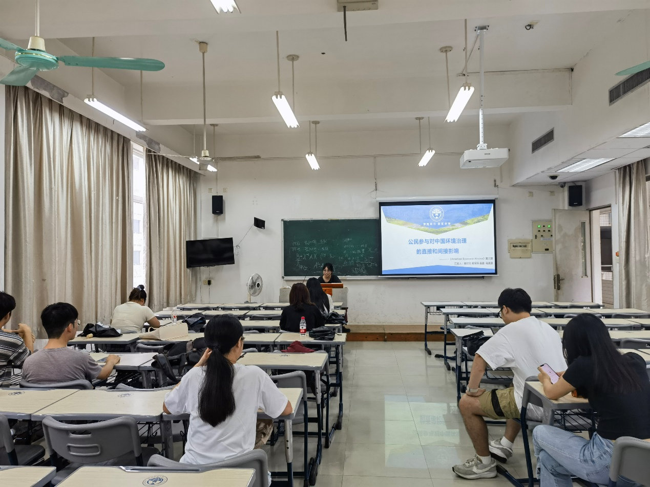 首先由唐拉拉同学介绍文章的选题的政策背景以及理论假设。文章探索的是作者们探究了公众对环境治理的参与是否有助于提升环境质量及其影响途径。接着周萍萍同学介绍了本文的实验设计与实证模型,并展示了文章的基准回归结果。随后,吴惠同学进一步分析了公众公开以及私下参与环境治理是通过什么机制提升环境质量。最后,马赢赢同学进行了一般均衡分析,并总结文章。