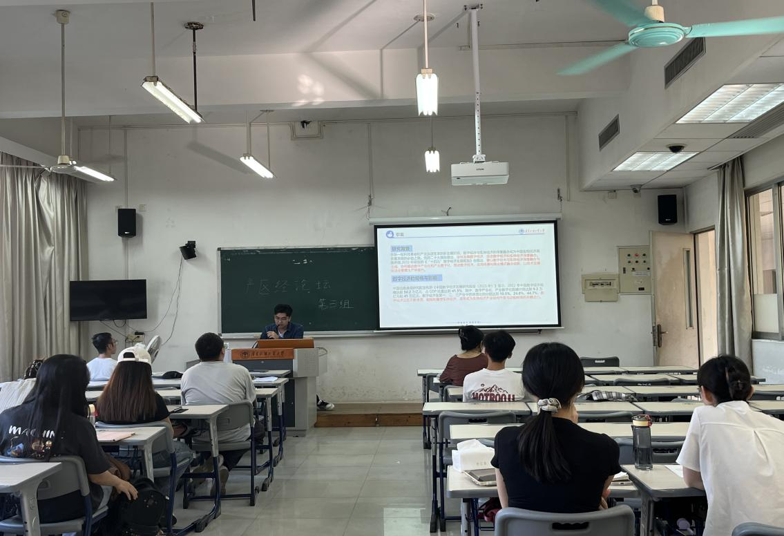 汇报过程中,王聪老师对同学们提出的问题进行了详尽的答疑,例如对企业全要素生产率的测算问题、对文章理论假设是否完善问题,进行了深入探讨。同时,王聪老师也为同学推荐了2024年诺奖得主阿西莫格鲁的相关文献,希望同学们通过阅读国外文献拓宽对数实产业技术融合的理解。最后,在通过老师和同学们的集体讨论和深入分析下,2024年第14期产经区经学术论坛在热烈的掌声中圆满结束。