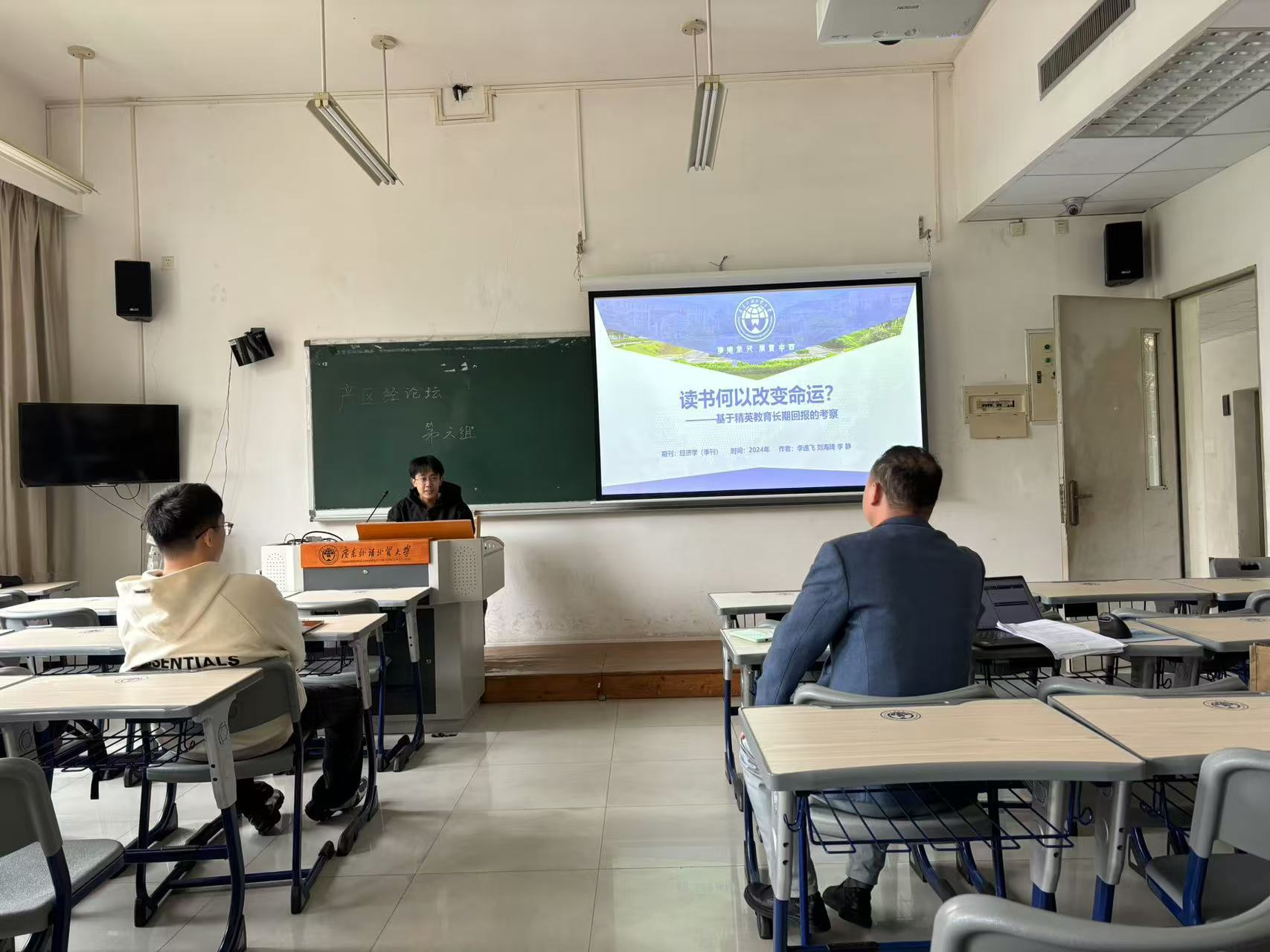 2024年11月21日14:00-15:00,经济贸易学院2024年第17期产业经济学和区域经济学学术论坛于教学楼C206举行。本期论坛分享的是由李逸飞、刘海琦、李静撰写的《读书何以改变命运?———基于精英教育长期回报的考察》。此次论坛由徐明老师主持,由23级硕士研究生郑宇栢、23级硕士研究生夏正、24级硕士研究生邓有为、24级硕士研究生杨文婕进行汇报。