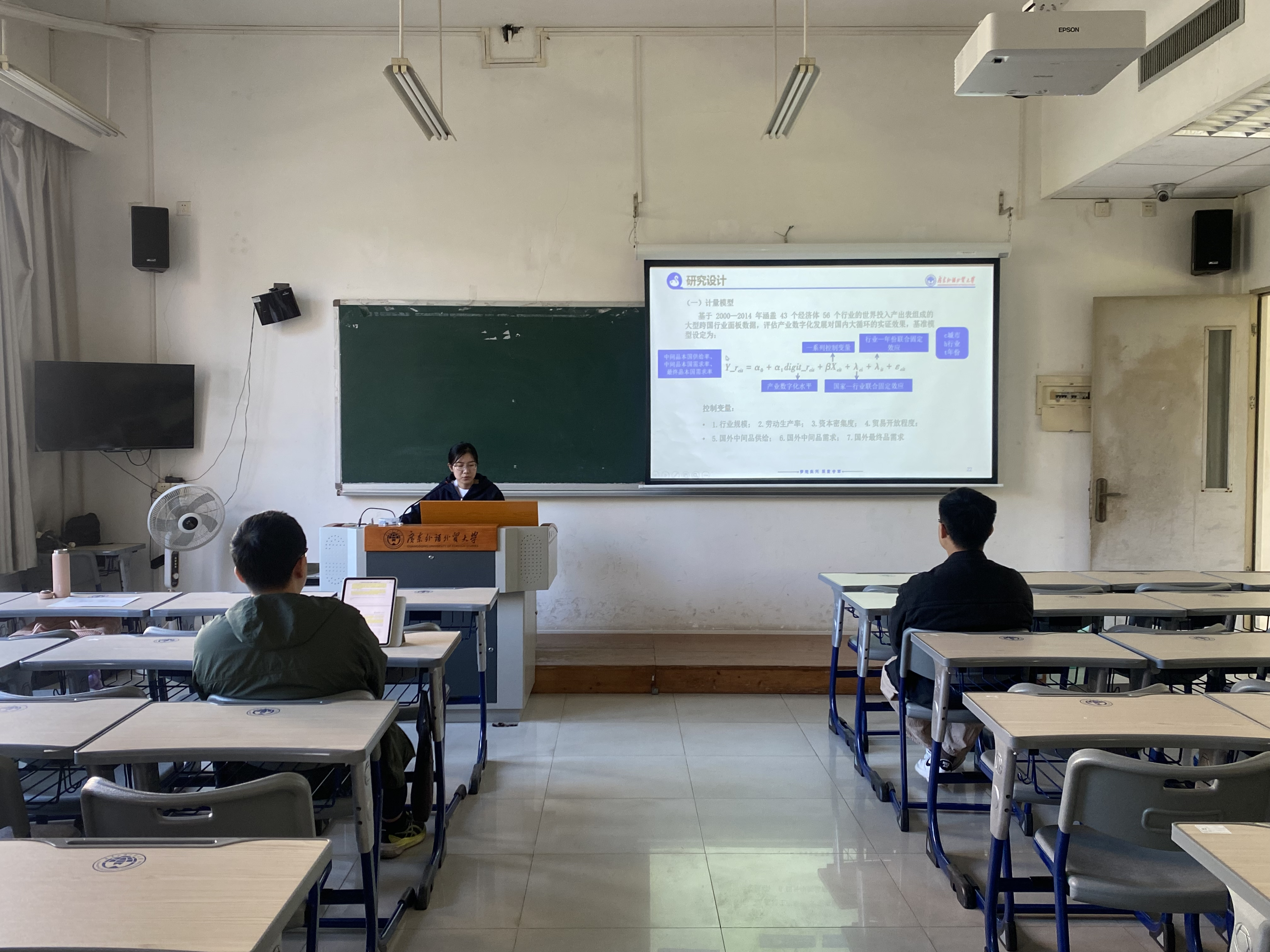在汇报实证部分时,汇报同学提出了部分实证结果的问题。针对提出的问题黄耿老师给予了充分的指导。此外黄耿老师认为同学们所汇报的论文选题切合时代需要,对于当前中国经济发展具有重要的现实意义。同时黄老师建议同学们可以进一步深入挖掘,尝试通过优化模型设定等方式来提高实证结果的准确性和可靠性。在与黄耿老师和同学们的讨论和深入分析下,2024年第18期产经区经学术论坛在热烈的掌声中圆满结束。