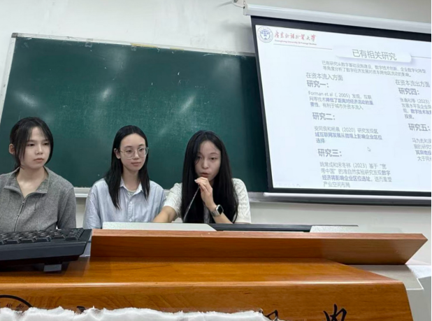 2025年11月6日晚上20时,经贸学院2025年第12期(总期第85期)产经组学术论坛在教学楼C座205室顺利举行。本次论坛由学院宋晖老师主持,25级产业经济学硕士研究生罗佳欣、李林怿、刘泽纯、许馨心共同解读发表于《经济研究》2025年第3期的《数字经济发展、资本跨区域非对称流动与异地分类投资》(作者:孙伟增、司璐、吕越),各年级研究生积极参与学习与讨论。