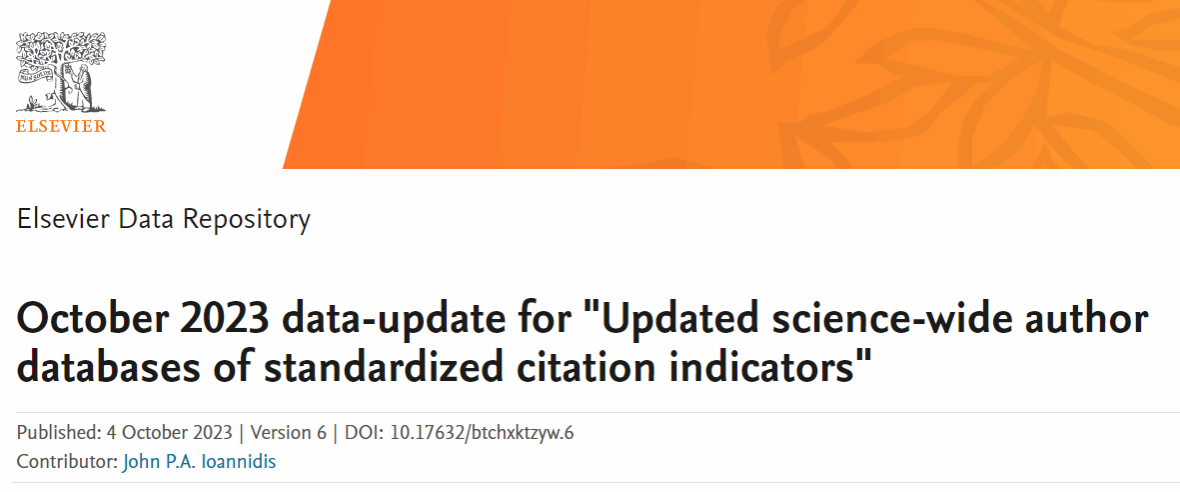 该榜单是斯坦福大学John P. A. Ioannidis教授团队与Elsevier与合作的项目成果,发布在Elsevier旗下的Mendeley Data网站上。榜单采用论文引用数、h指数、合著调整后的hm指数等6种综合指标(c-score),从近700万名科学家中遴选出全球排名前2%的科学家,旨在提供一个科学家长期科研表现的衡量指标,更客观、更真实地反映科学家在全球范围的影响力及为相关领域发展作出的杰出贡献。