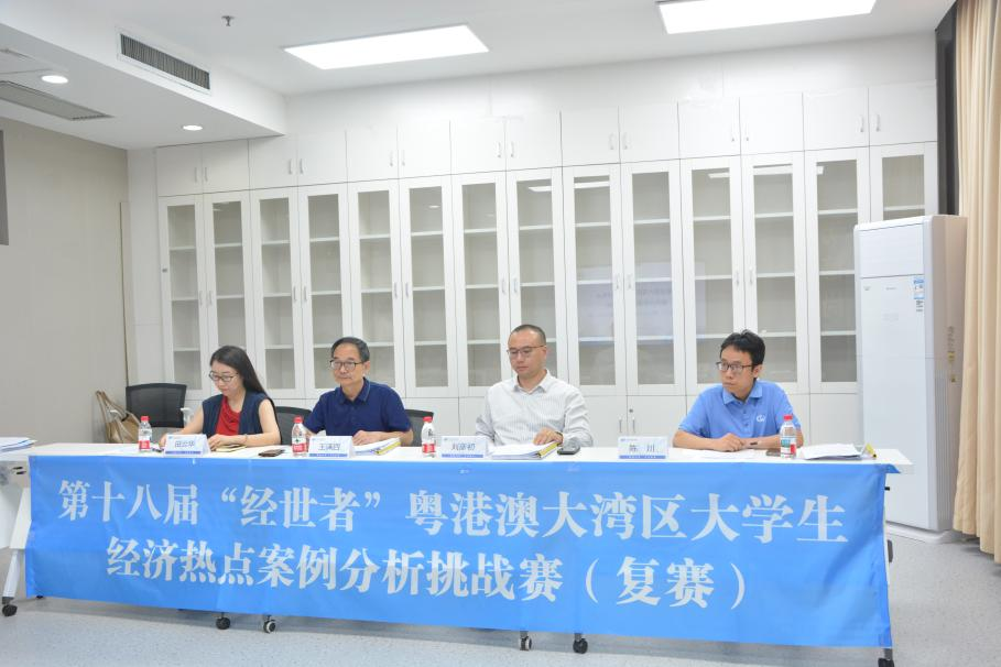 2025年5月12日晚,第十八届“经世者”大湾区大学生经济热点案例分析挑战赛复赛于广外大学城校区举行。广州大学创新创业中心院长王满四、中山大学岭南学院副院长刘彦初、广东外语外贸大学国贸系主任田云华、经济系教师陈川老师担任评委。
