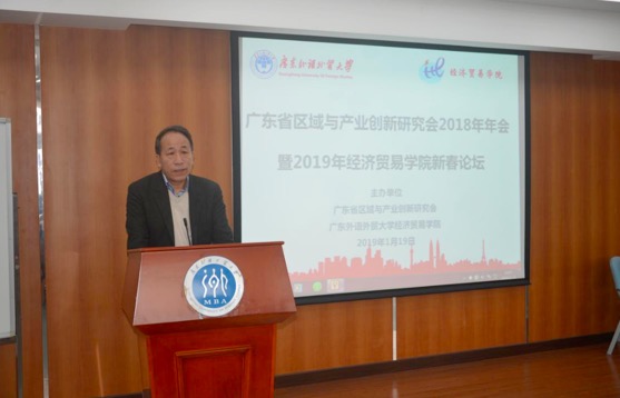 本网讯 1月19日上午,广东省区域与产业创新研究会2018年年会暨2019年经济贸易学院新春论坛在北校区第九教学楼403教室举行。中国社会科学研究院研究员、《经济研究》杂志社社长张永山,《经济研究》编辑部主编刘霞辉,《经济研究》编辑部副主编谢谦,南京大学经济学院副院长郑江淮,广东省社科院产业经济研究所所长向晓梅,我校经贸学院院长张建武、高教研究中心主任陈万灵、经贸学院党委书记梁洁、经贸学院副院长王俊等专家学者和师生代表出席本次论坛。会议由张永山主持。