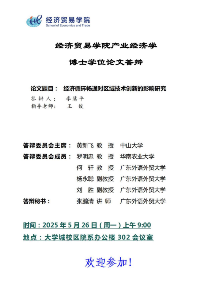 经济贸易学院关于博士研究生学位论文答辩安排的通知
