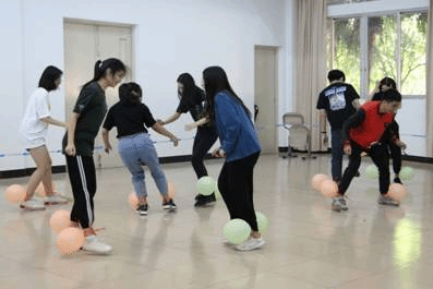 而在彩色迷惑游戏中,每支队伍需派出十人,依次将彩带缠到腰上,完成障碍跑,若挑战时间小于3分钟,则视为挑战成功。在步步荆棘游戏中,每支队伍派出8人参与游戏,游戏分为两轮。首先,两名队员开始大象鼻子转圈,完成8圈后两人击掌,再由其中一名成员将水壶掷入固定区域内。第三名队员需在指压板上双脚跳绳15个,第四名队员在指压板上高抬腿并随机回答问题,答对5个问题即为成功,若两轮挑战时间不超过4分钟则挑战成功。