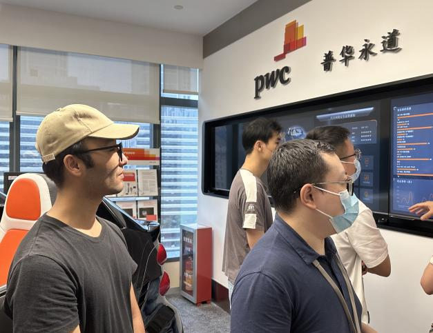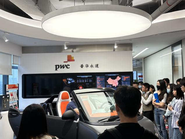 此次参访由参观车联网实验室和模拟面试实战两个环节组成。首先,工作人员为同学们讲解车联网实验室的核心技术组成,并通过实操演示帮助同学们理解汽车网络安全态势感知,同学们通过现场提问与工作人员进行交流,深化对于普华永道风险管理业务的认知。