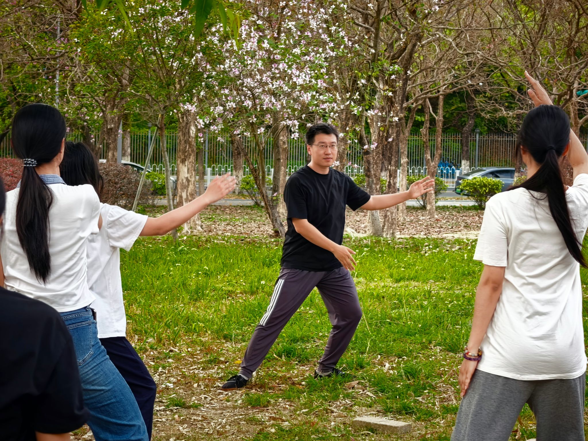 为深化“五育并举”育人实践,助力学生全面发展,3月18日下午3时30分,经贸学院二级心理辅导站联合校体育部、校团委、校心理健康与咨询中心在学校东南门外的草坪上举办“太极·拾春印心”主题活动,校体育部钟罗军书记、校心理中心阎茹副主任、经贸学院陈哲副书记、校团委刘天阳老师以及经贸学院学工办全体辅导员出席本次活动。