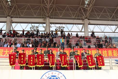 校党委常委、副校长、军训领导小组组长刘海春同志对我校军训工作作了简要总结,他高度评价了我校师生在军训中表现出的优秀品质和良好的精神面貌,同时要求同学们将军训中收获到的宝贵财富运用到日后的学习生活中去,践行广外“明德尚行,学贯中西”的校训。随后,副校长陈林汉同志宣读了军训优秀集体和个人的表彰决定,与会领导为获奖的集体和个人进行颁奖。