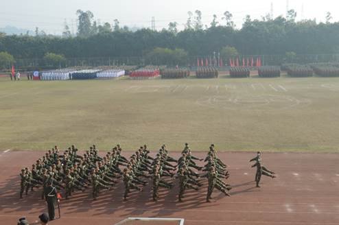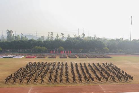 1月25日上午9时,2018级本科生军训汇报表演暨总结表彰大会在南校体育场举行。出席本次大会的领导有:校党委书记隋广军,党委常委、副校长、军训领导小组组长刘海春,副校长陈林汉,广东省国防教育办公室副主任石雄东,广州市番禺区人民武装部军事科科长邓斯奇中校,军训旅政委、武装部部长何越晖。我院党委书记梁洁老师以及军训指导员、学工办辅导员龙世邦老师和张自勉老师也出席了本次大会。