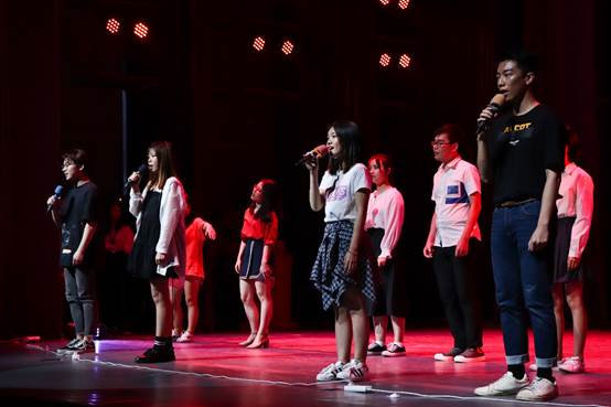 小朋友们走秀结束后,辅导员老师刘晓琪上台为同学们献唱《你曾是少年》,歌声悠扬动听,同学们纷纷随之合唱。紧接着,柯树煜、夏立红、张自勉、刘晓琪四位辅导员老师一同为同学们献唱歌曲《大梦想家》,祝愿同学们毕业后继续勇敢追梦。