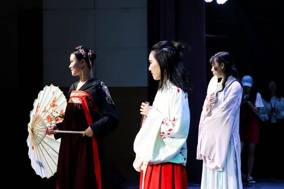 经贸模特队带来服装表演《踏歌》。古典的衣物,窈窕的身材,曼妙的步伐,模特队的同学们踩着节奏为观众们带来一场视觉盛宴,赢得观众掌声不断。