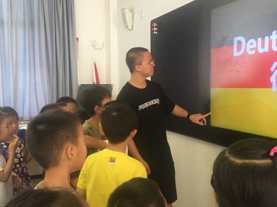 本网讯 2019年7月8日上午8点20分,义教组成员到达办公室,提前准备今日课程,按计划开展教学活动。 今日的特色课程为德国文化,由义教组成员卢立庭主讲。课堂上除了简单讲解了德语的构成,还讲述了德国文化,生动形象地向小朋友们介绍了德意志民族这一严谨的民族形象。课堂内容生动活泼,收到了小朋友们的积极反馈。最后,小朋友们与这位富有学识而又幽默的大哥哥合影留恋,结束了当天的课程,留下了一段美好的回忆。