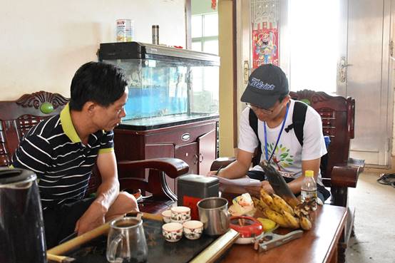 与此同时,调研组全组在东坑村走访村民并邀请村民填写调查问卷,另外,他们还拜访了东坑村村委会委员干部,了解东坑村的一些基础情况,为日后的调研工作做了充足的准备。