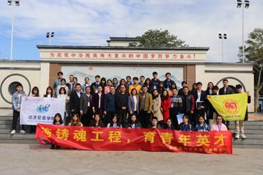 为深入学习贯彻党的十九届六中全会精神,号召广大师生积极服务乡村振兴战略。2021年11月25日,校党委委员、团委书记纪彬,经贸学院党委书记梁洁,广东省社会主义学院统战理论研究部副主任、原扶贫规划处副处长杜联藩带领经贸学院第五期青马班学生骨干一行50余人前往韶关市乳源瑶族自治县开展农村产业调研暨经贸学院第五期青马班开班仪式。县驻镇工作队队长杨子江和驻阳陂村第一书记、我校老师商杰强以及镇领导同师生一行共同走访了桂头镇,并对当地的农村产业情况展开了深入的调研。