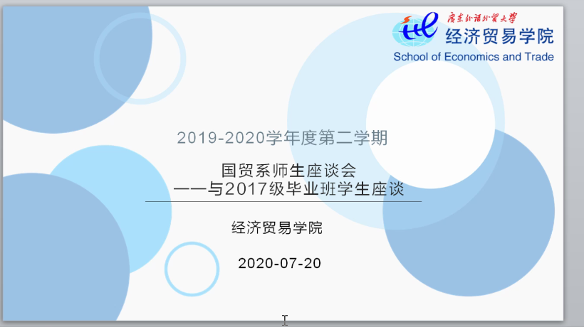 为加强师生之间的交流,了解并解答学生在现阶段的困惑,国贸系邀请了何元贵、肖奎喜、许陈生、张金艳、符淼、张志明、田云华、陈丽娴、朱文珏等多名优秀教师于7月20日召开线上本科生师生座谈会,吸引了大批国贸系学生的踊跃参与。