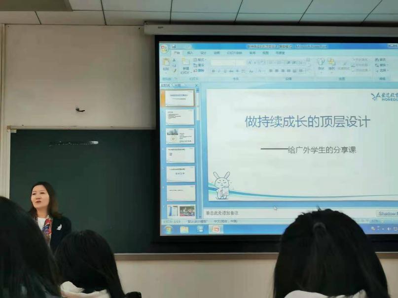 首先,徐总经理向我们介绍了疫情期间的一些创业故事,并以宏途教育为例引出了此次讲座的中心内容:要做企业持续成长的顶层设计,分为三个部分,即:看得远、过得硬、活得久。看得远要求我们在创业初期要确立远大的目标、拥有广阔的视野和敏锐的商业嗅觉;过得硬要求我们不断发展和完善在企业成长过程中遇到的各种难题,并逐个攻破,从而提高自己的竞争力;活得久要求我们创业不能一蹴而就,要不断创新。