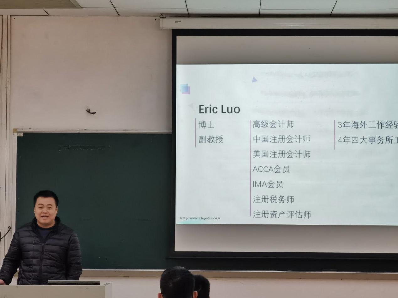1月4日上午,Eric Luo博士在南校区教学楼D512教室开设了“如何进行财经类证书的选择”的讲座。