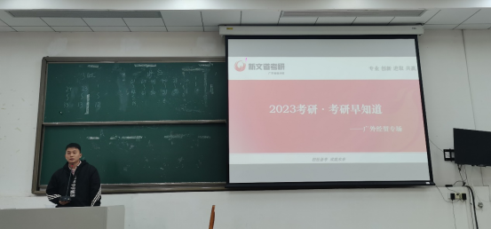 为增进经济与贸易学院学子对考研考公的了解,1月12日下午,经贸学院邀请广东新文道考研的徐奔老师在教学楼C507作考研知识讲座。讲座由缪冠中辅导员主持,2020级国贸专业学生参加讲座。